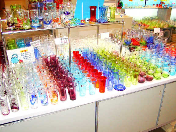 B-29 一口ビアグラス カラー(青・水・緑・紫・赤) 沖縄の空を彩る星をそのままグラスにしたような 三角口のグラスです。 口径約72mm 最大幅約72mm 高さ約75mm 内容量約110ml |